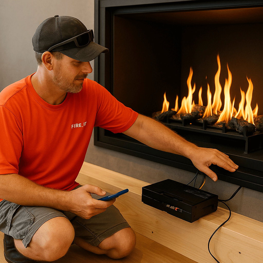 FIRE.IT redefines fireplace control with sleek, intuitive technology, bringing modern convenience to the heart of your home. With Wi-Fi and Bluetooth connectivity, you can monitor and manage your fireplace from a Touchscreen Hub or Desktop Hub, effortlessly.